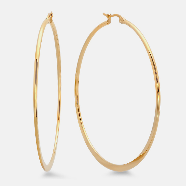 This classic pair of 18k gold plated earrings is in a statement 60mm diameter size that allows this pair to be dressed up or down.