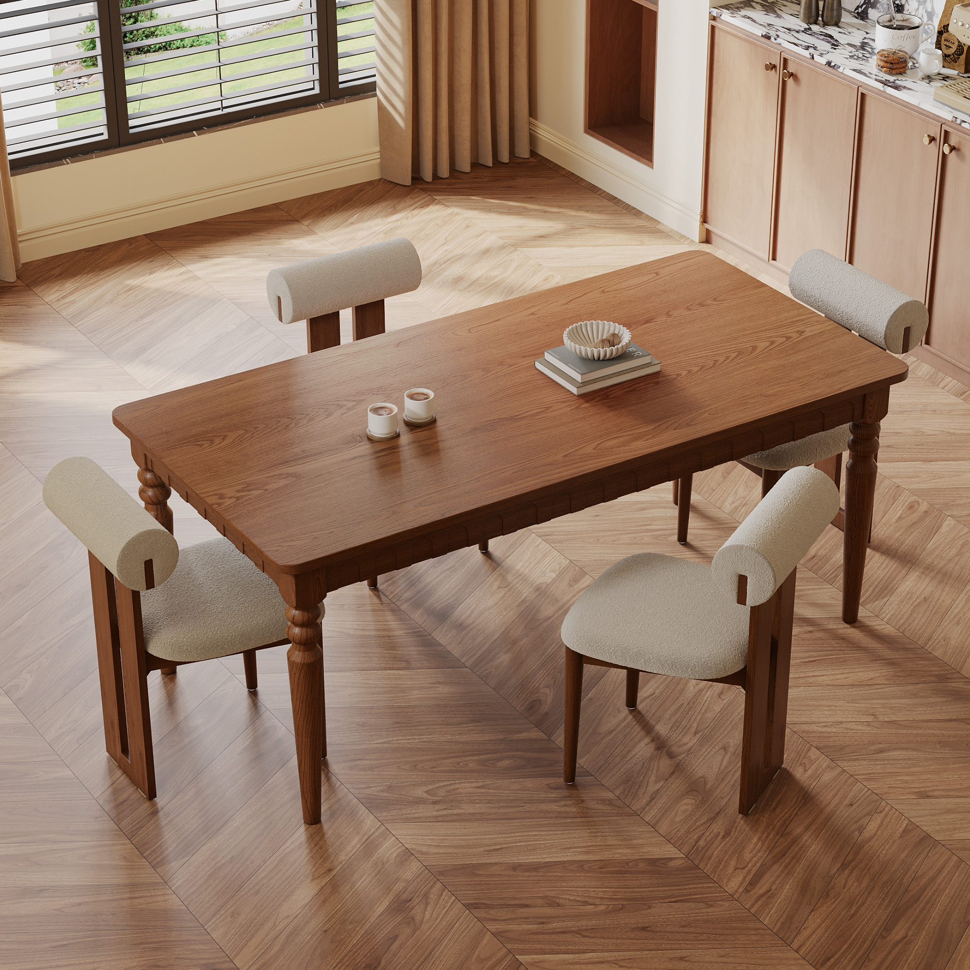 Host memorable gatherings with this 71-inch dining room table for 6. Its elegant design and warm ash wood finish create a welcoming space for family and friends to enjoy meals together.color:Brown, shape:Rectangular, base material:Ash Wood, tabletop material:Plywood, finish:Ash Wood Veneer, seating capacity:4-6, style:Mid-century Modern