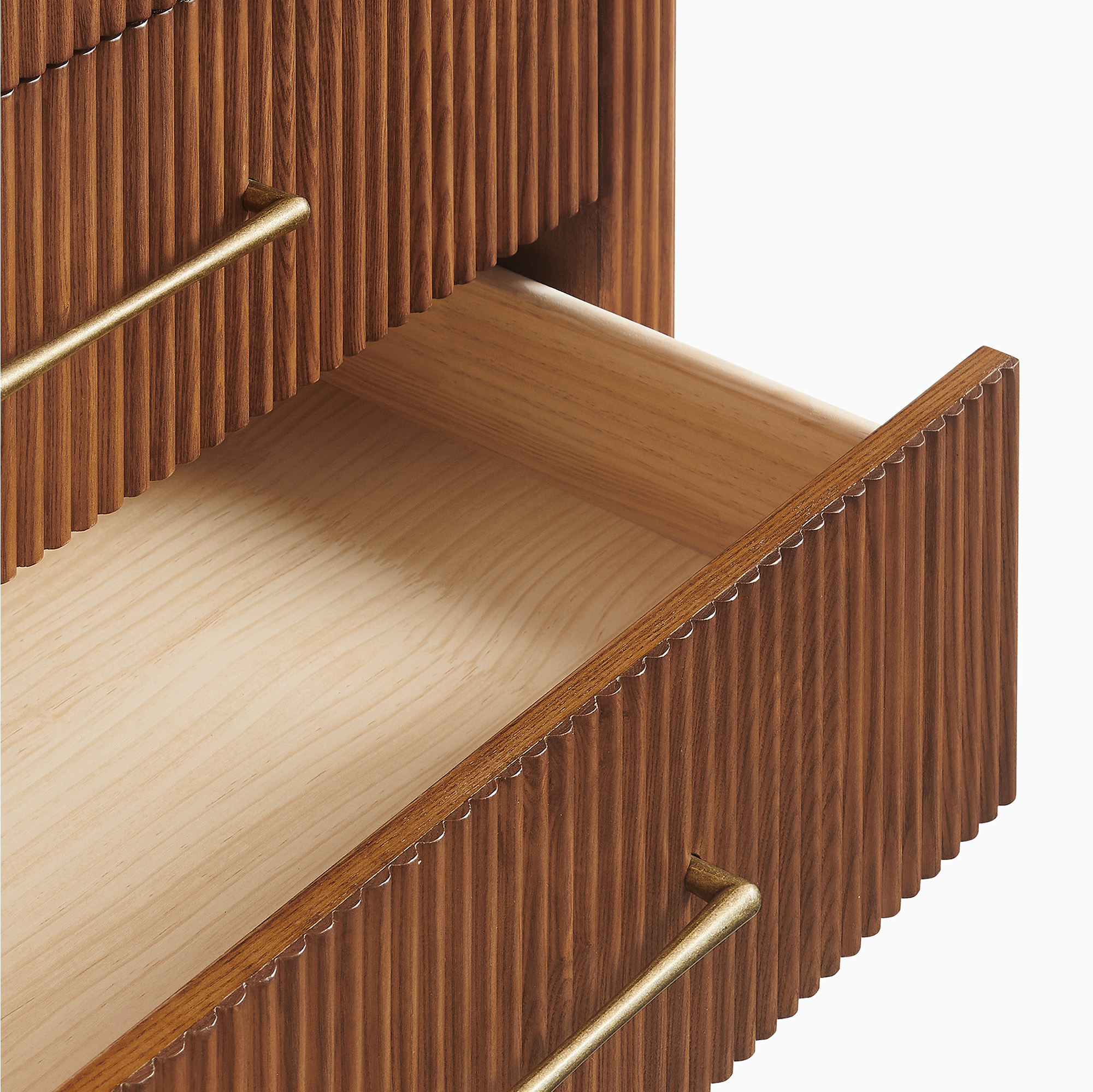 Elevate your bedroom with the striking Ava 36″ brown fluted 5-drawer chest, crafted from rich ash wood veneer and a durable plywood frame. Designed to last, this piece brings a touch of contemporary style and is perfect for those who appreciate bold, modern design.color:Brown, material:Ash Wood, material:Plywood, finish:Ash Wood Veneer, number of drawers:5, material of drawers:Solid Wood