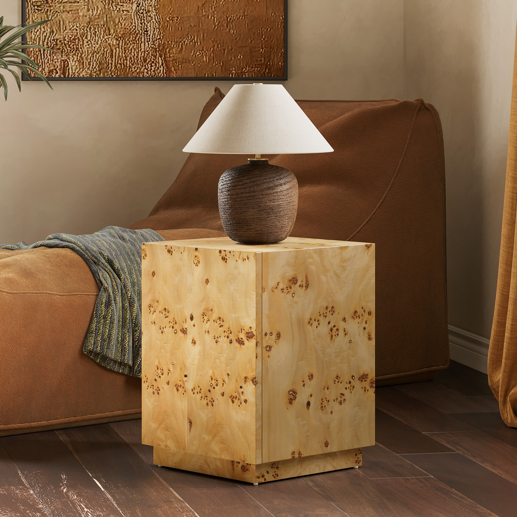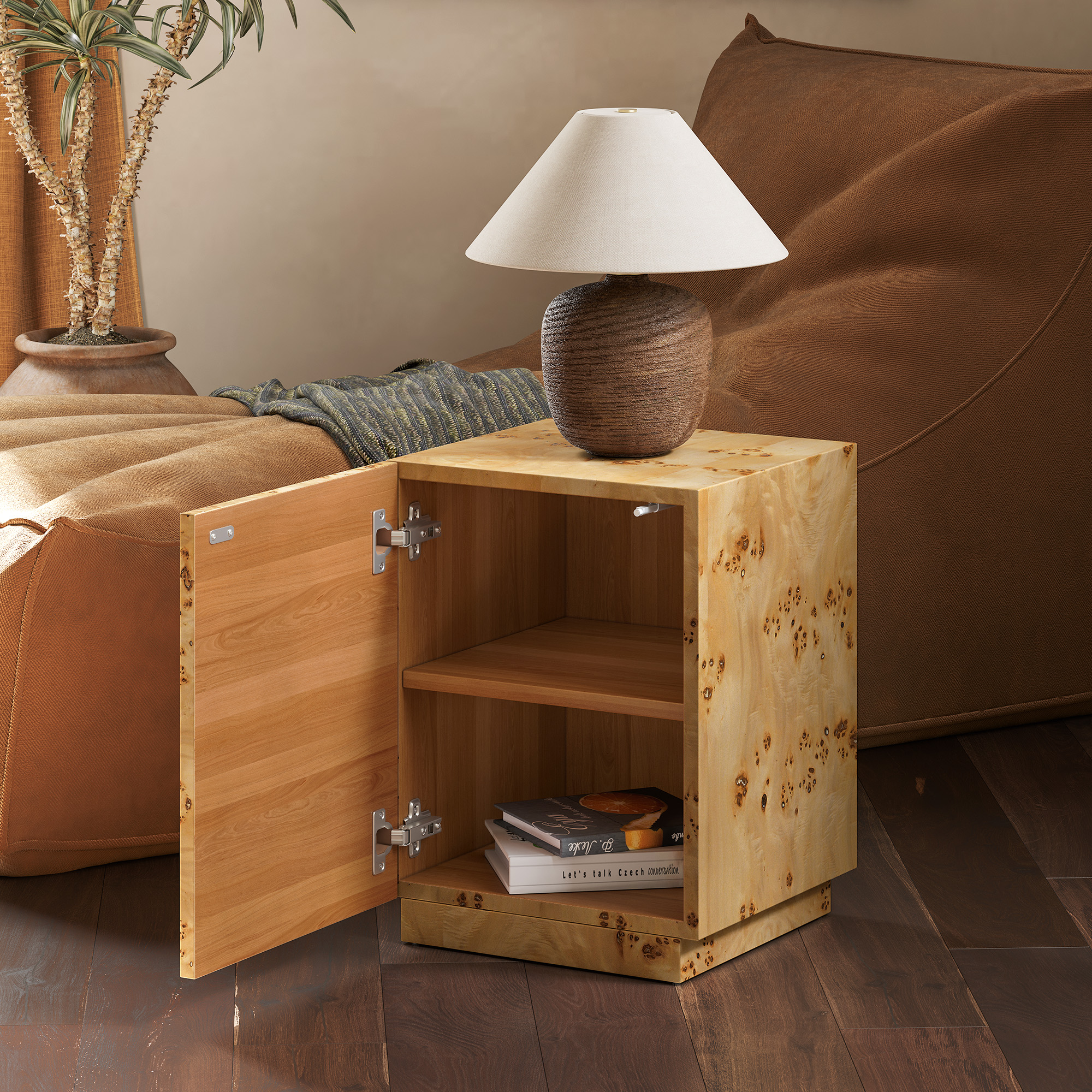 Bodil 15″ burl side table functions as both a nightstand and side table, featuring hidden storage to meet your needs. Add a touch of natural sophistication to your home with this unique design.tabletop material:Engineered Wood, base material:Engineered Wood, finish:Burl Veneer, color:Honey, shape:Rectangular