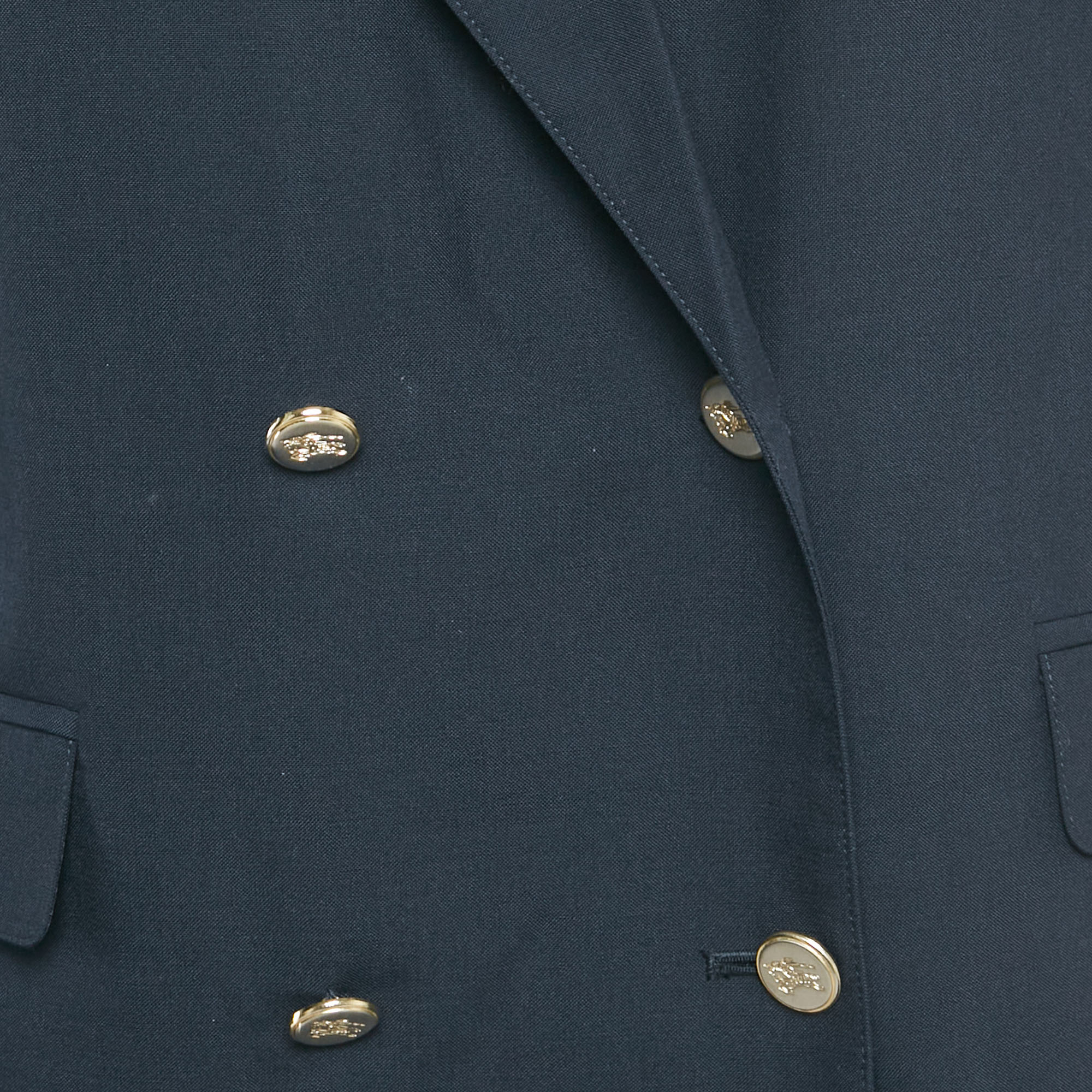 • Burberry Navy Blue Wool Blend Double Breasted Blazer XL