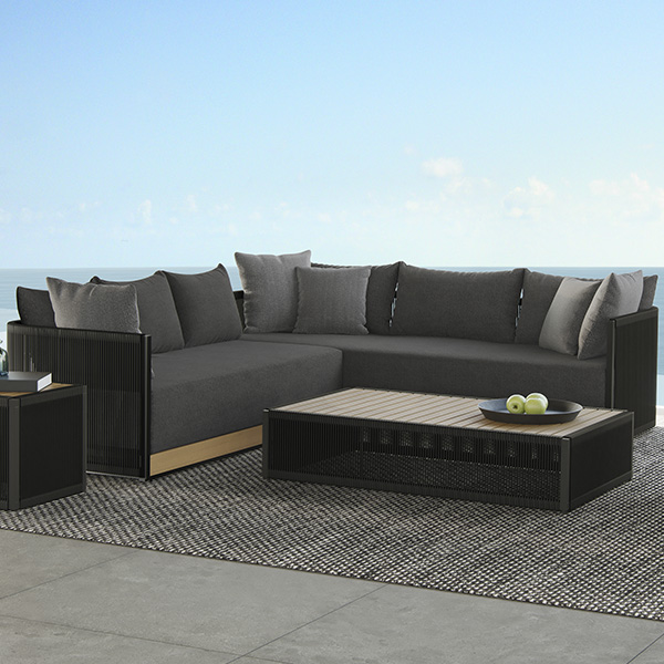 Introducing the enhanced Clifton Corner Sectional Sofa. Elevated comfort and versatility.Our redesigned Clifton now offers a broader range of configurations, providing even more options to suit your space. With its commanding presence, the Clifton Corner Sectional sofa boasts deep seating that beckons relaxation. Crafted with a sleek blend of powder-coated steel and regatta cord, its curved silhouette exudes modern sophistication. Enhanced with a rich teak panel for a touch of timeless elegance, this sofa is built to withstand the elements with its durable performance fabric upholstery.