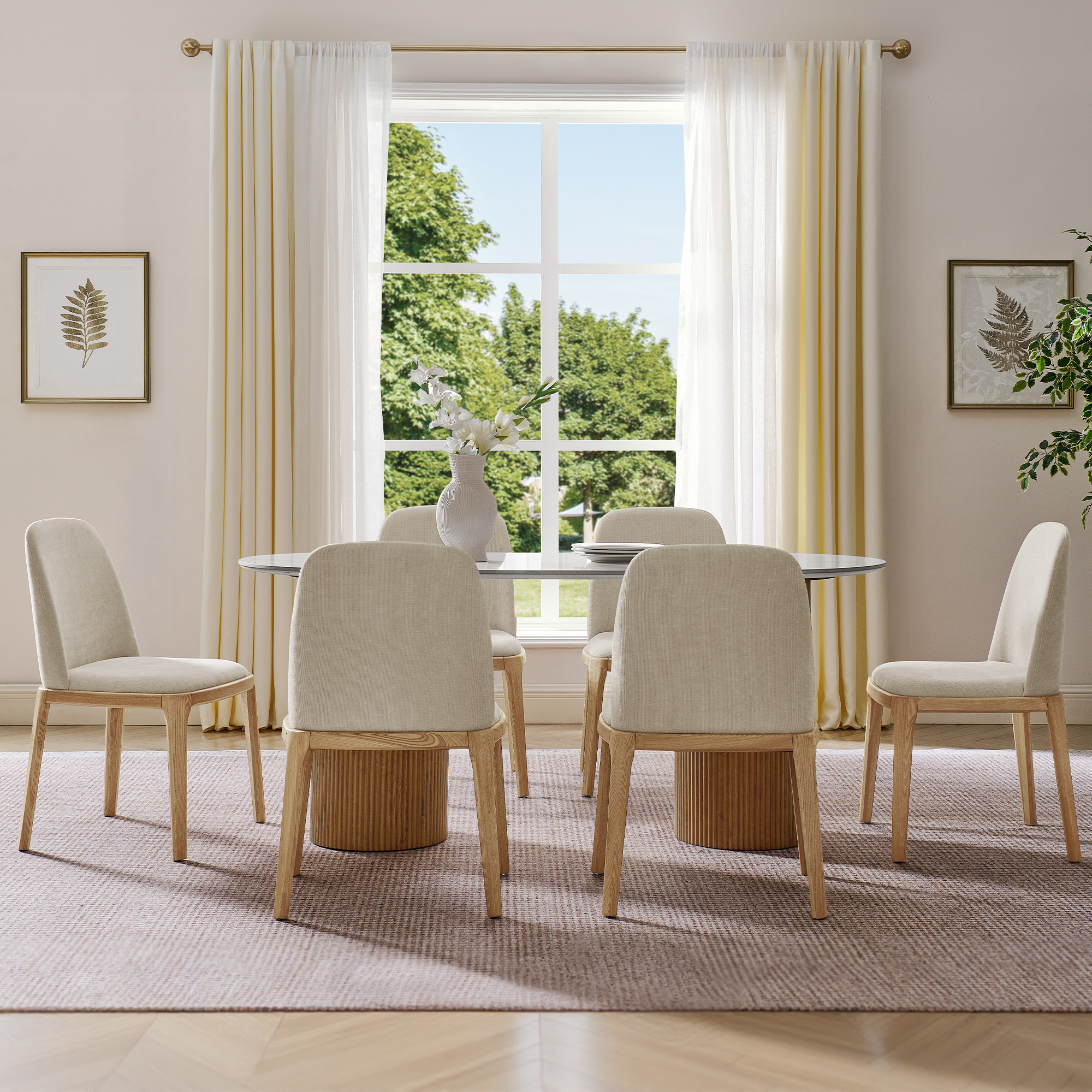 Enhance your dining room with this elegant wooden dining chair. The chair features a sturdy frame crafted from beautiful, light-toned wood, highlighting a clean, natural grain that adds warmth and sophistication to any space.color:Beige, frame material:Ash Wood, filling:Foam, back design:Upholstered Back, armrest design:Armless, unit count:2 PCS, max bearing weight:330 lbs, color:Natural, frame material:Solid Wood