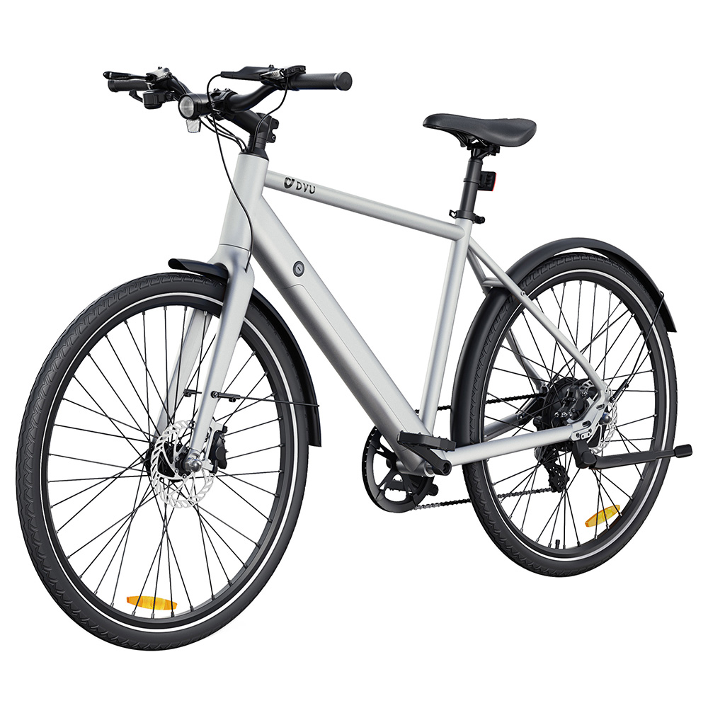 DYU Stroll 1 Electric Bike 250W Motor 36V 9Ah Battery 700*38C CST Tire 25km/h Max Speed 100km Range Dual Hydraulic Disc Brake Shimano 7-speed LED Display – Silver