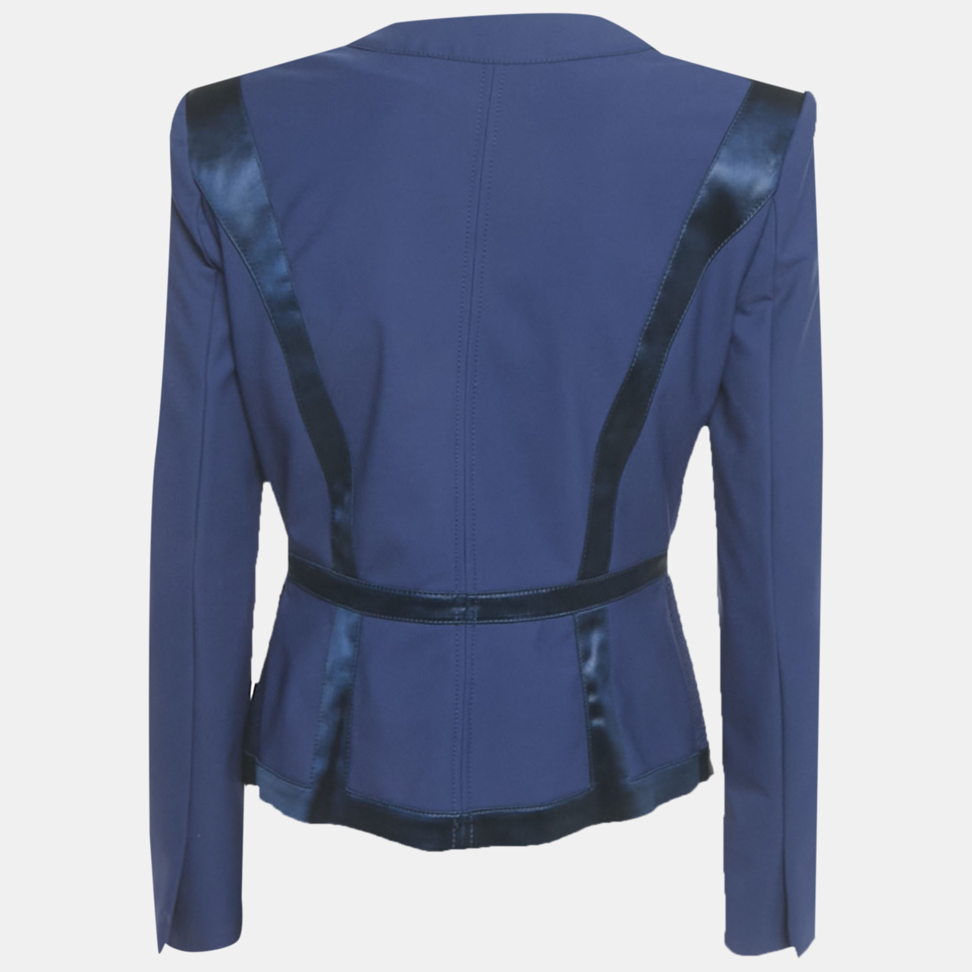 Elisabetta Franchi brings modern sophistication to tailoring with this blue crepe blazer. Designed with clean lines and subtle logo accents, it embodies effortless power dressing.
