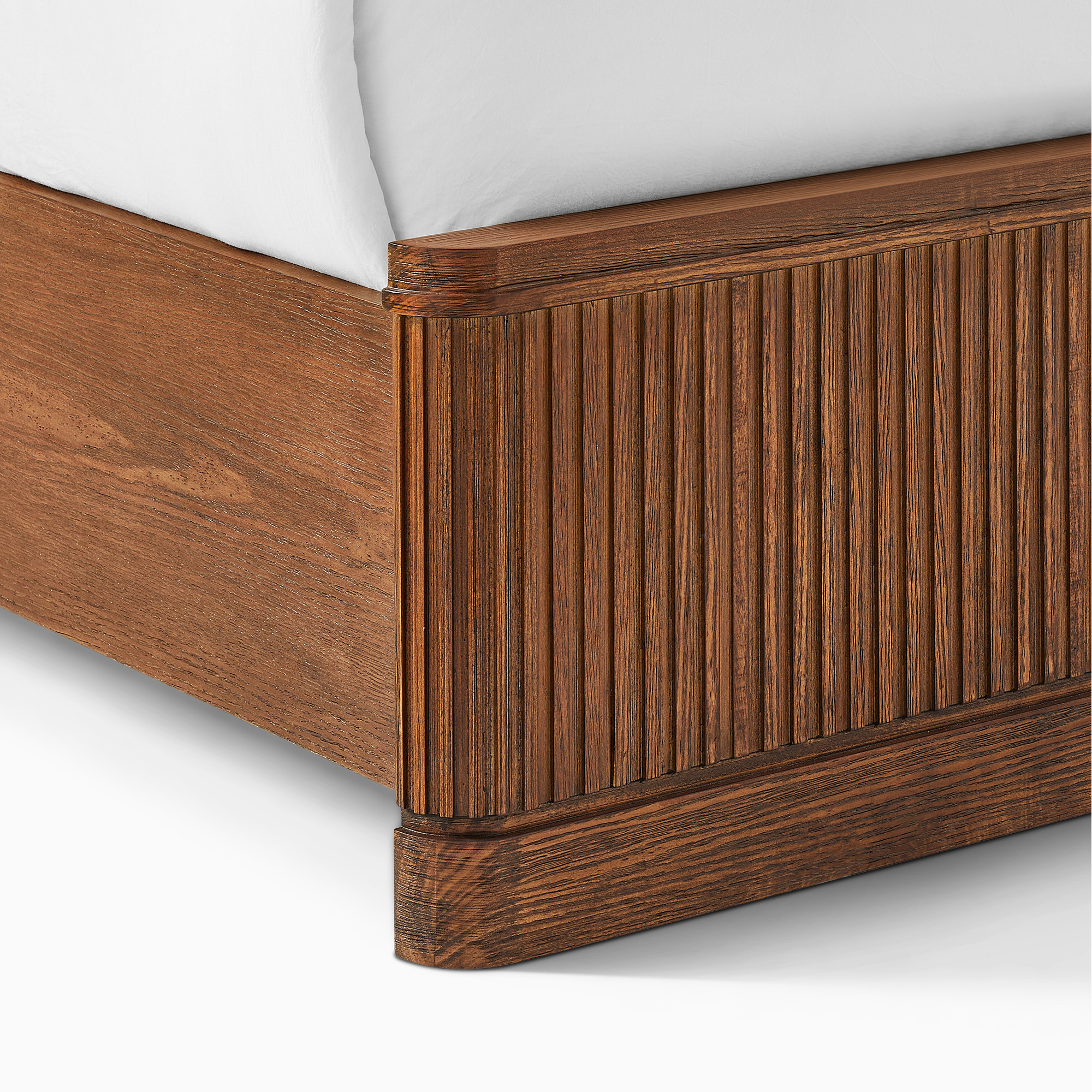 Discover the Finnley queen size fluted wood bed, a stunning piece of furniture crafted with poplar wood veneer. This bed frame of the bedroom set is made of poplar wood, plywood and engineered wood, offering durability and timeless style for your bedroom.frame material:Engineered Wood, frame material:Plywood, frame material:Poplar Wood, bed size:Queen Size, color:Reddish Brown