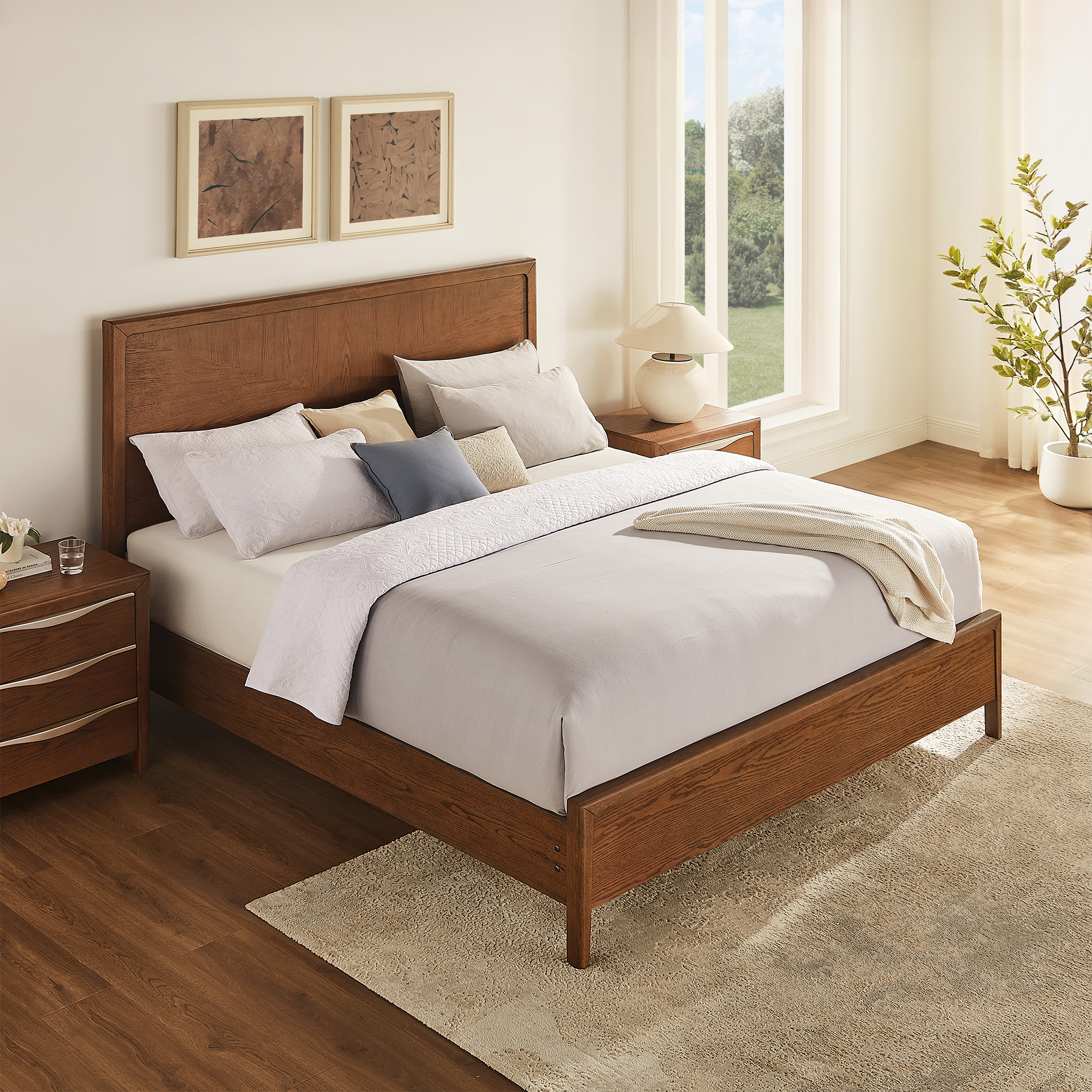 Discover the Ivar king size bed, a stunning piece of furniture crafted with oak veneer. This bed frame is made of solid wood, plywood and engineered wood, offering durability and timeless style for your bedroom. Perfect for enhancing your home decor, the Ivar bed is a must-have for comfort and sophistication.frame material:Engineered Wood, frame material:Rubber Wood, bed size:King Size, frame material:Plywood, color:Reddish Brown