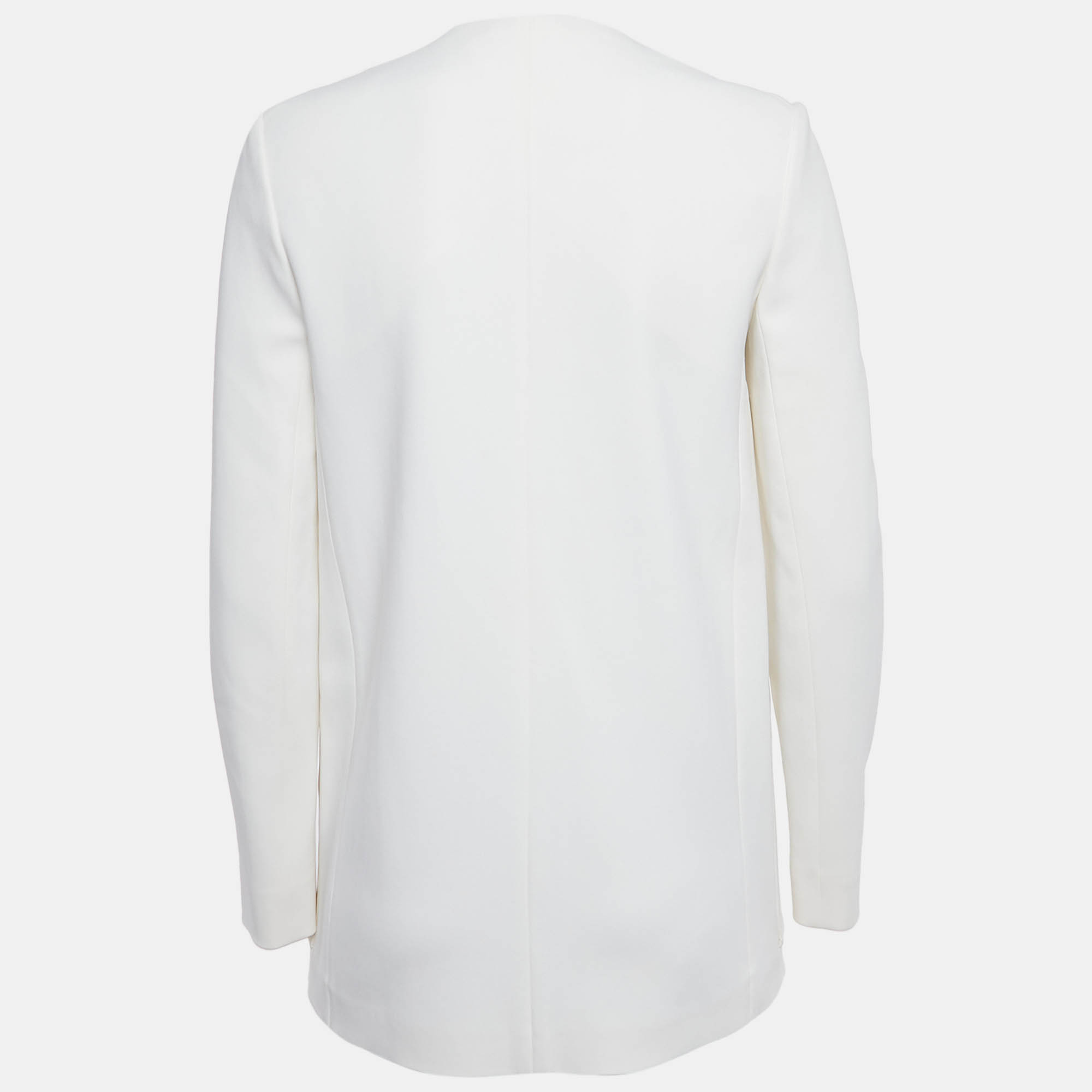 Joseph’s Lambert blazer is cut in crisp white crepe, its sharp tailoring softened by the fluid fall of the fabric. The double breasted front with contrasting buttons brings a touch of edge, while oversized pockets keep it modern and easy. A designer blazer for women that moves effortlessly from office hours to evening plans, and quickly becomes a wardrobe anchor.