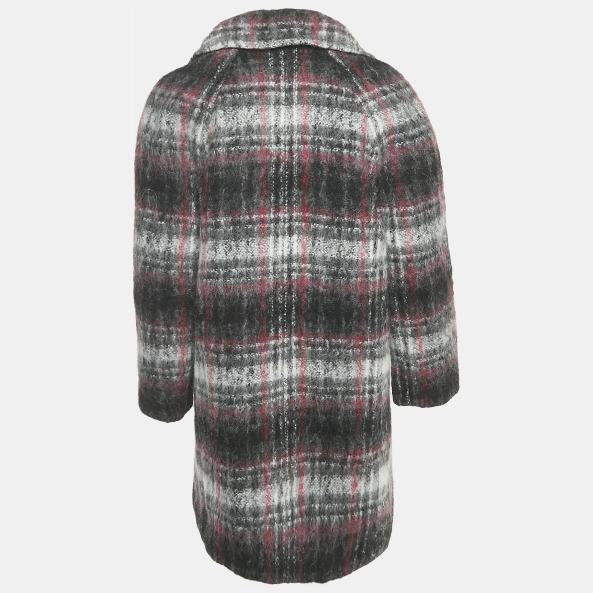 • Karl Lagerfeld Grey/Pink Check Wool Tailored Coat S