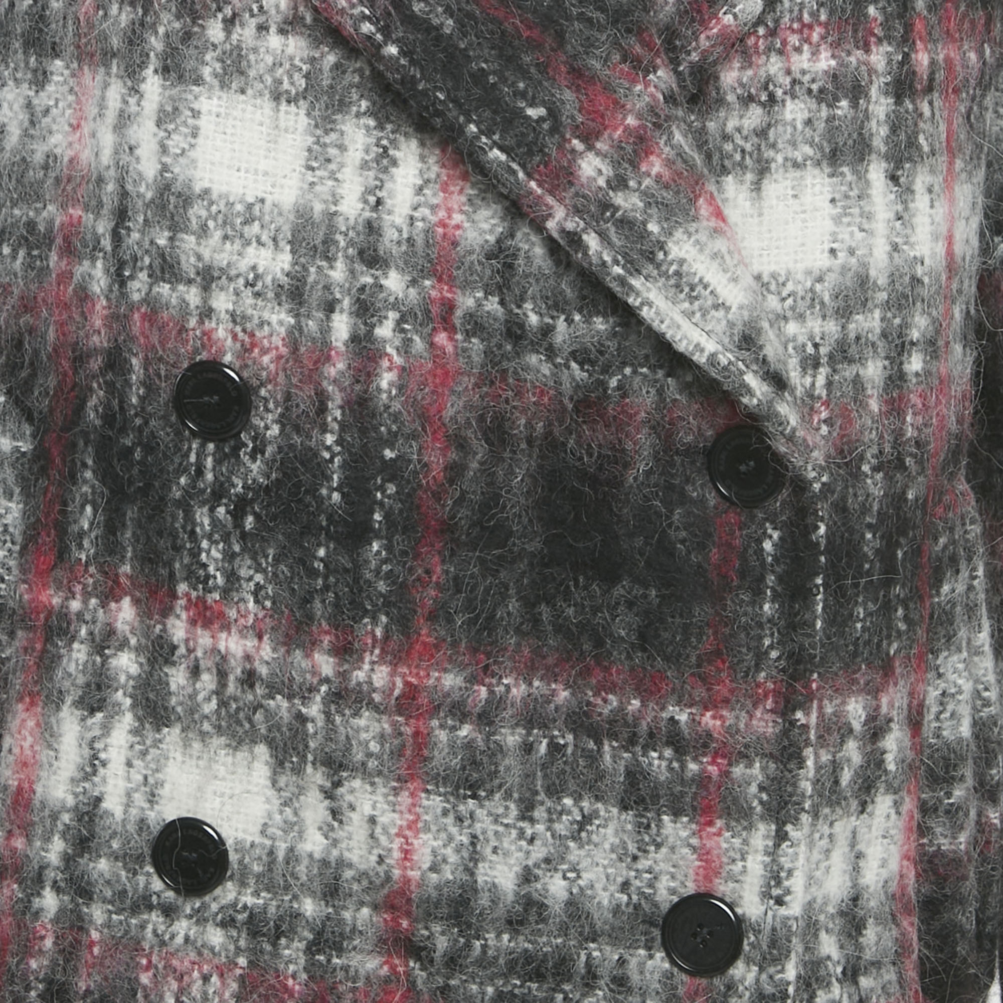 In a refined grey and pink check pattern, this Karl Lagerfeld coat is tailored from wool. Structured and polished, it adds sophistication to cool weather ensembles.