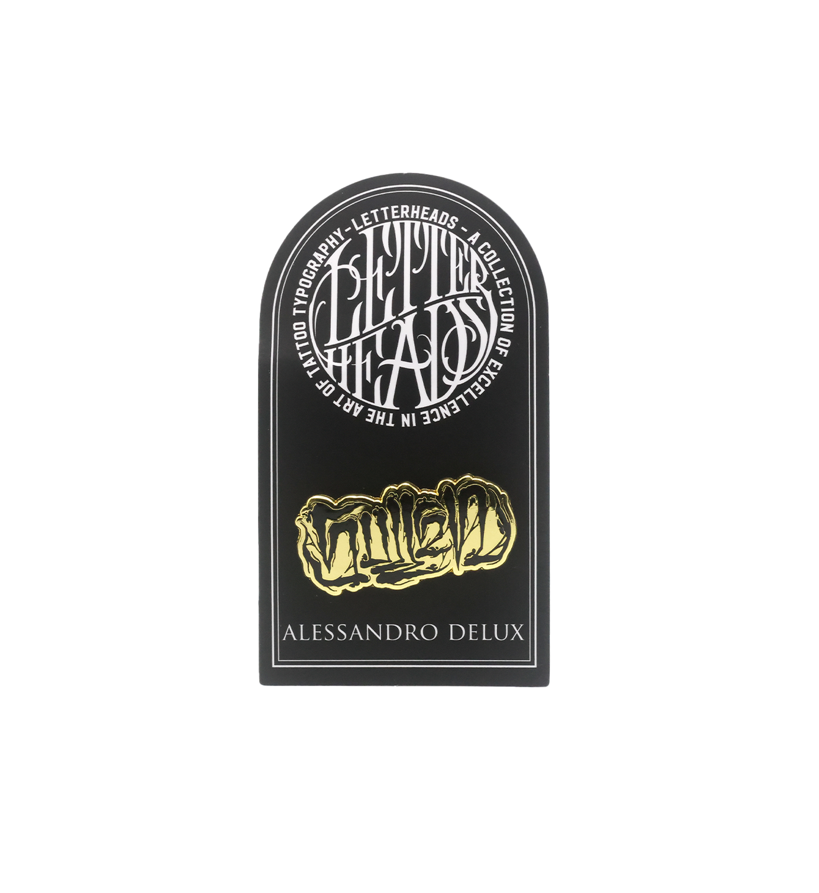 Grab this gold collectable Letterheads Pin with lettering by artist Alessandro Delux!
