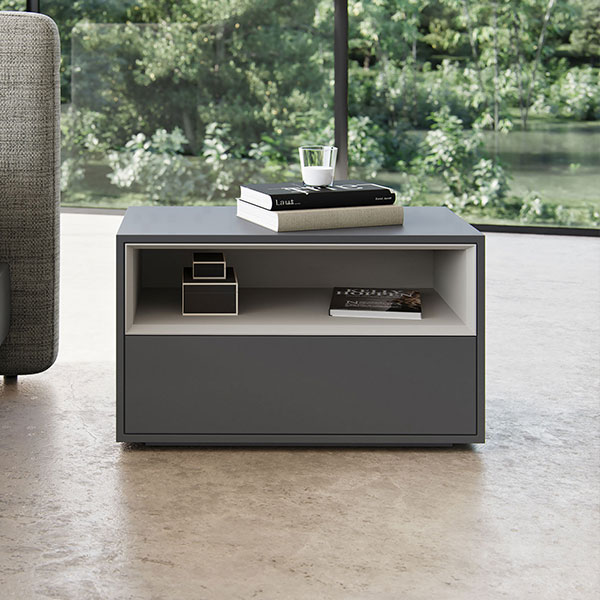 Add contemporary elegance to your bedroom with the Madison Collection. The simple yet striking design complements many interiors, with distinctive lacquer and wood finishes to mix and match for a custom feel. The oversized single-drawer nightstand features standard drawer with push-latch soft closure. An accent compartment creates an organic and copacetic look with our other bedroom pieces.