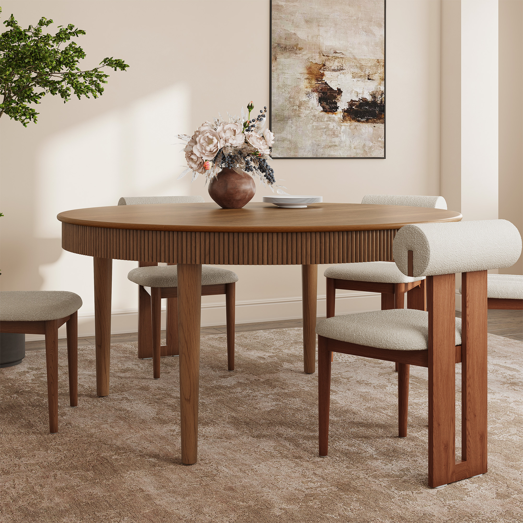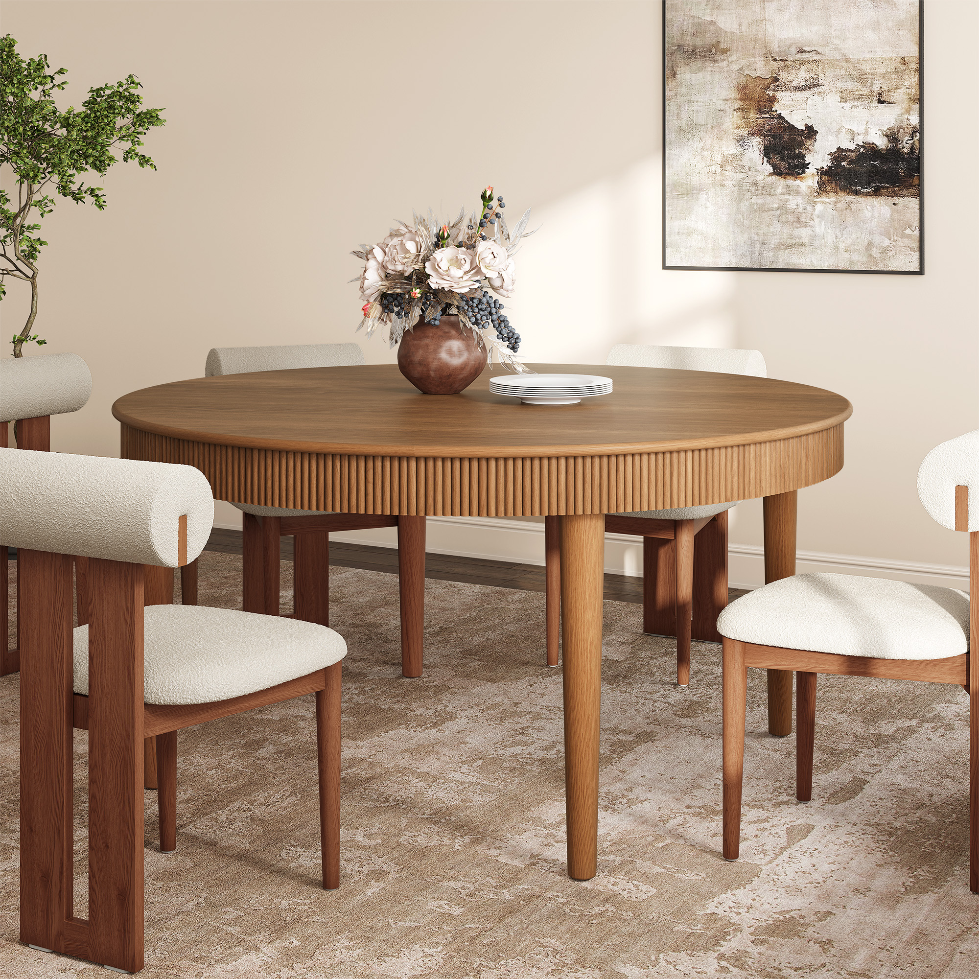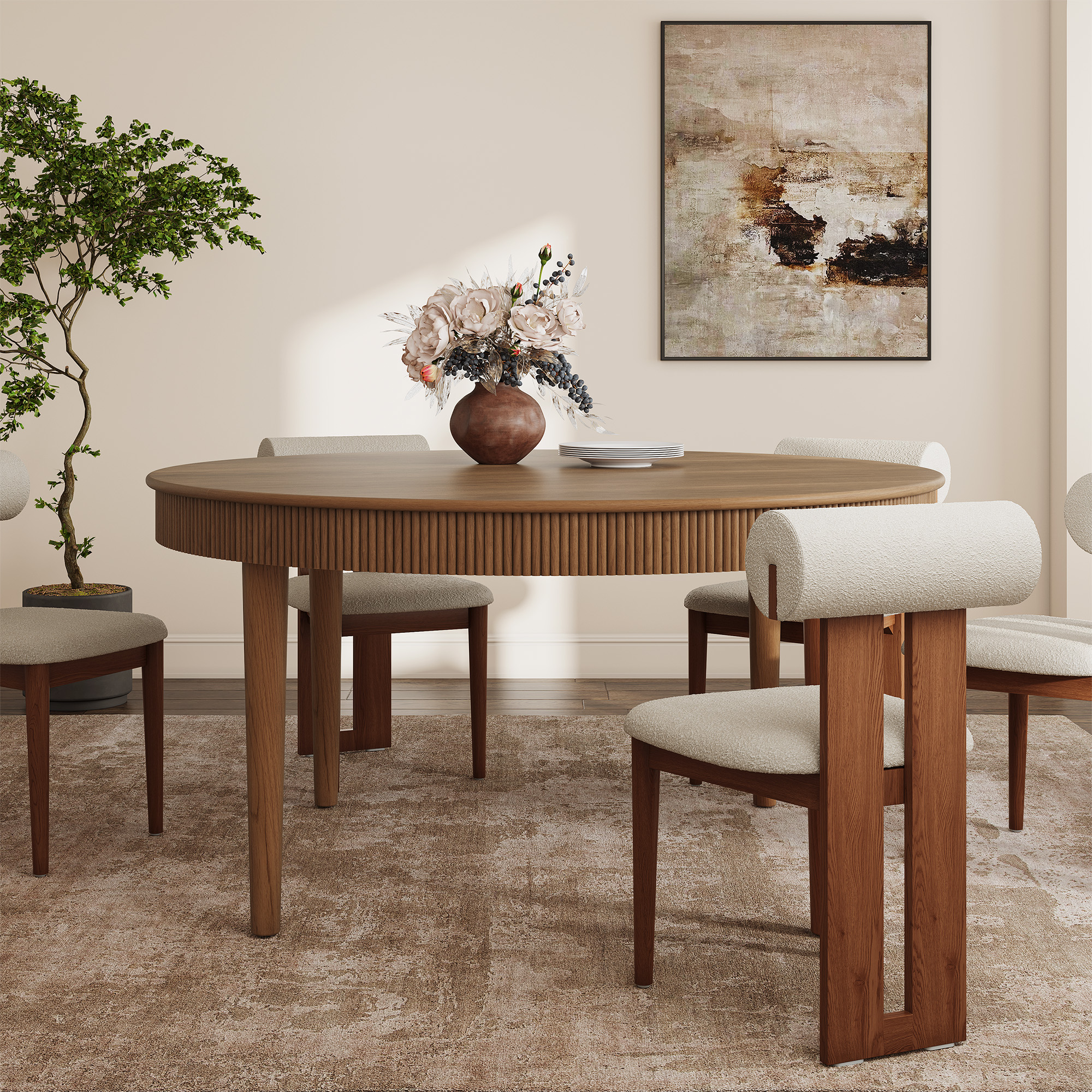 Gather family and friends around a solid wood round dining table, and you’ll have memories to last a lifetime. Boasting a rich brown finish and a timeless round silhouette, this table adds a touch of classic charm.color:Brown, shape:Round, seating capacity:4-6, base material:Solid Wood, finish:Ash Wood Veneer, tabletop material:Solid Wood