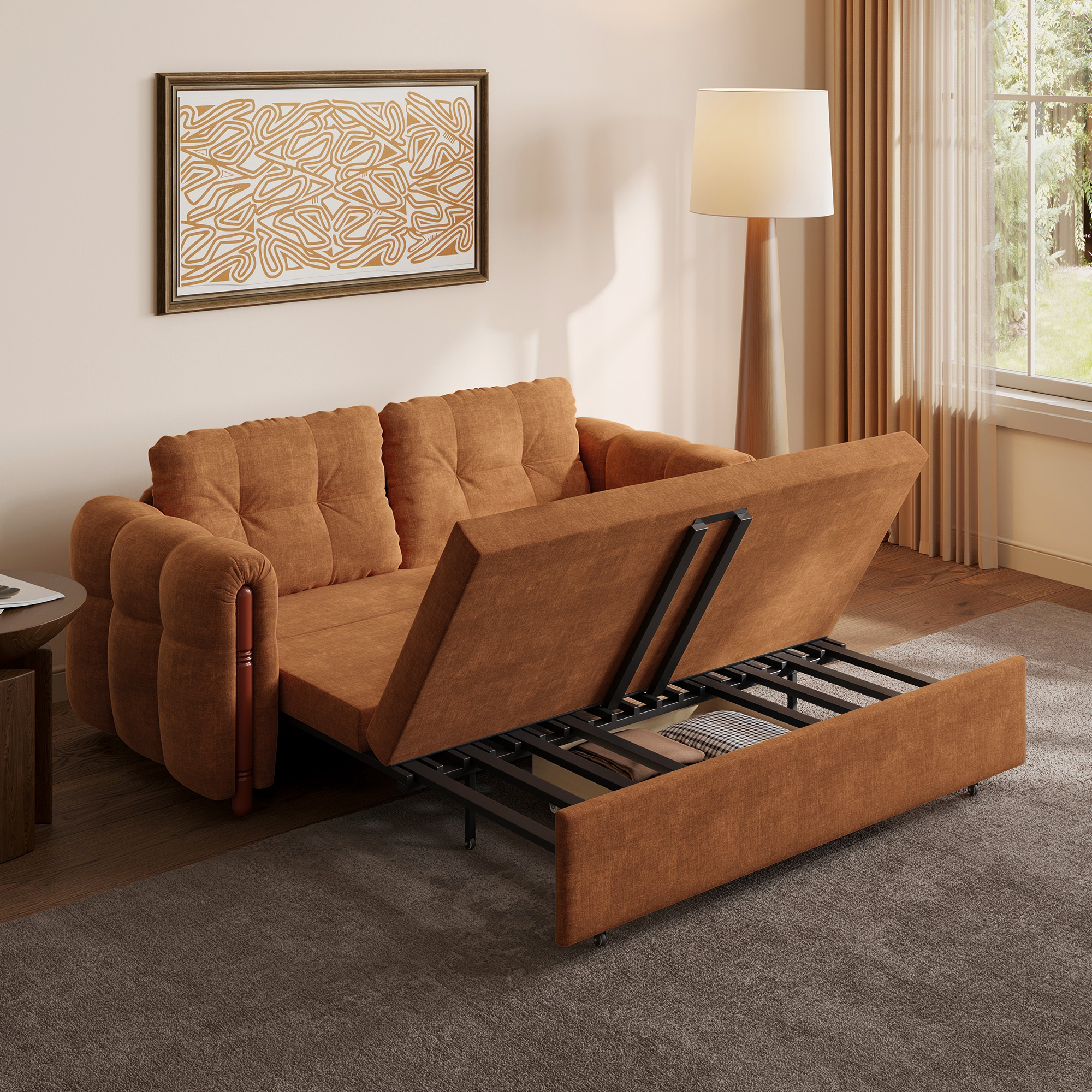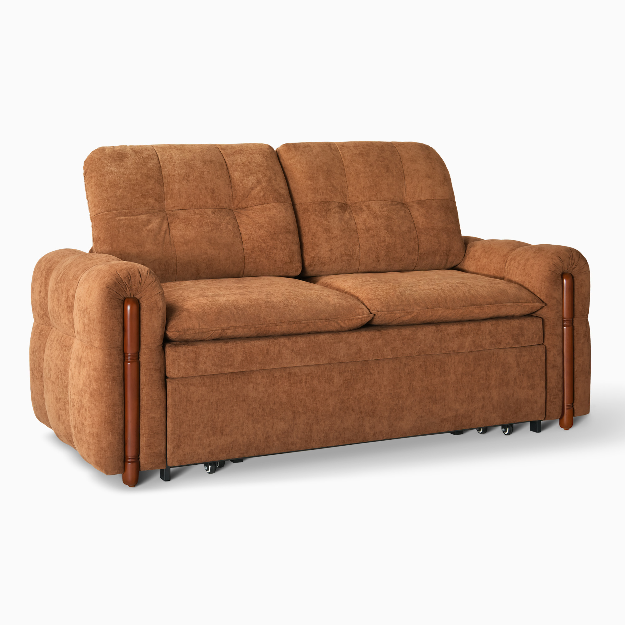 Need a stylish and space-saving seating solution? This pull out loveseat sofa bed offers both comfort and versatility. Its elegant design and plush cushions provide a cozy seating experience, while the pull-out feature easily transforms it into a comfortable bed for guests.color:Orange, seating capacity:2-3, sofa type:Sofa Bed, frame material:Solid Wood, upholstery material:Chenille, filling:Foam, frame material:Carbon Steel