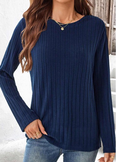 Modlily Navy Long Sleeve Round Neck T Shirt – M