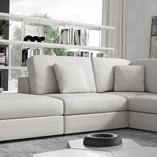 ELEGANT IN ITS MINIMALISM, UNPARALLELED COMFORT, AND EPIC SCALE, THE PERRY OFFERS MODULAR COMPONENTS CREATING ENDLESS CONFIGURATION POSSIBILITIES.Upholstered in a plush, soft-hand, premium basketweave fabric, featuring exceptional durability and resistance to fading. Smoothly connect multiple components with an included clamp. Solid eucalyptus construction with Pirelli webbing support, plus high resiliency foams (seat, back, and arm) remind us of true artisanal craftsmanship. Includes one armless modular unit and one connection clamp. One throw pillow included.