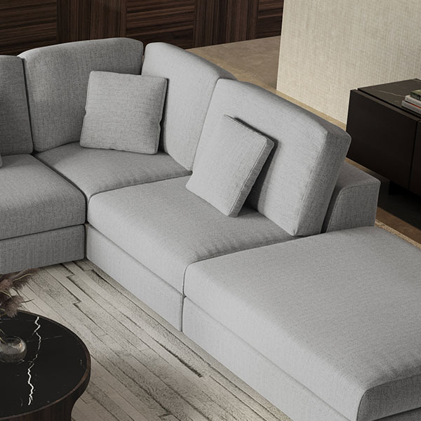 ELEGANT IN ITS MINIMALISM, UNPARALLELED COMFORT, AND EPIC SCALE, THE PERRY OFFERS MODULAR COMPONENTS CREATING ENDLESS CONFIGURATION POSSIBILITIES.Upholstered in a plush, soft-hand, premium basketweave fabric, featuring exceptional durability and resistance to fading. Smoothly connect multiple components with an included clamp. Solid eucalyptus construction with Pirelli webbing support, plus high resiliency foams (seat, back, and arm) remind us of true artisanal craftsmanship. Includes one armless modular unit and one connection clamp. One throw pillow included.
