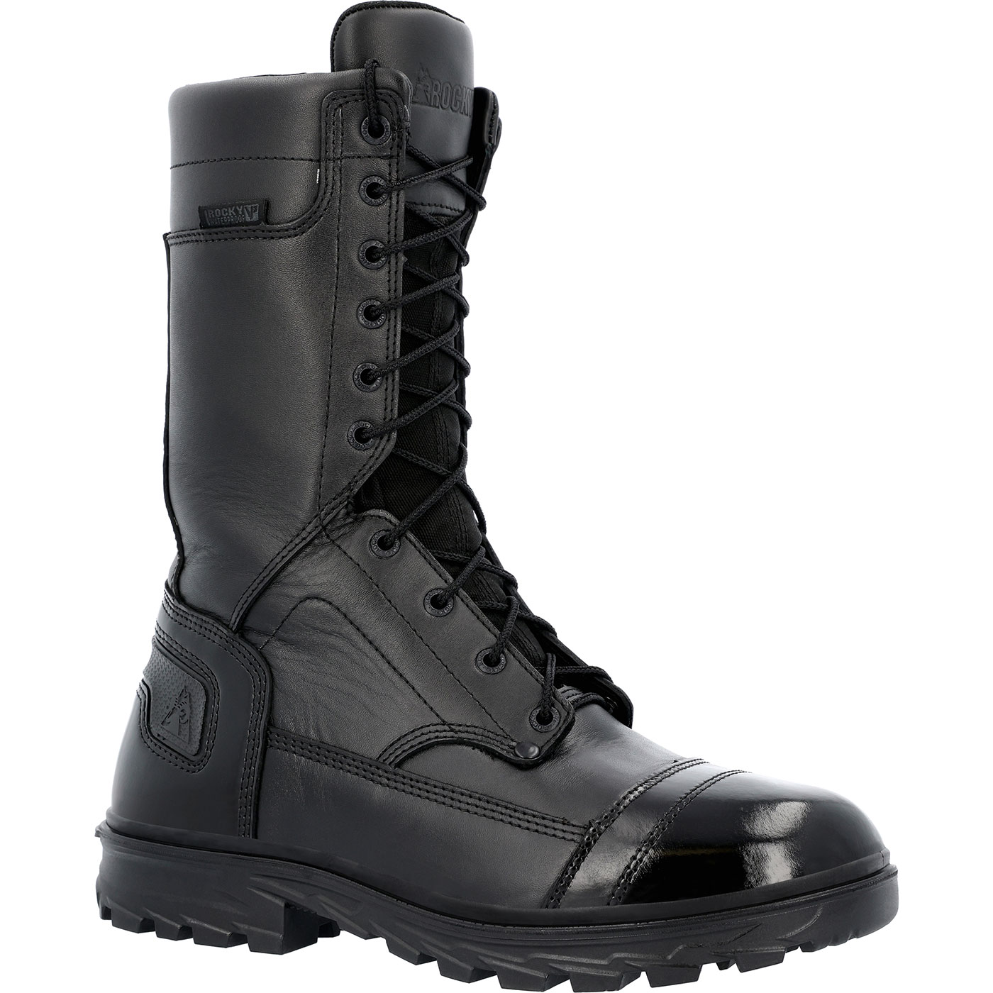 Rocky® Jump Boot Pro offers out of box comfort. The direct-inject TPU outsole is lighter and more flexible eliminating break in time and offering greater shock absorption. This is a 10-inch boot with our breathable, recycled vapor pass waterproofing. The durable YKK side zipper allows for quick donning and doffing. With a PU midsole and Rocky® Air-Port Comfort footbed this boot provides comfort and cushioning. The polishable toe and heel bring the classic look to this athletic, high performance jump boot.