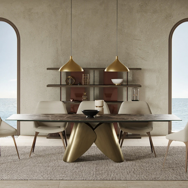 The Roma Extendable Dining Table, a masterpiece of ultra-modern luxury and sophisticated styling.Featuring a brushed bronze base and a pristine white marbled porcelain top, this dining table brings a perfect blend of contemporary elegance to any space.Designed to adapt to your needs, extends from 71″ to 103″, providing ample space to accommodate 6 to 12 seats. Whether hosting an intimate family dinner or a grand gathering, this table ensures you have the perfect setting. Crafted from high-quality materials including aluminum, iron, porcelain, and tempered glass, the Roma dining table promises durability and longevity. Its robust construction ensures that it will remain a centerpiece in your home for many years to come.