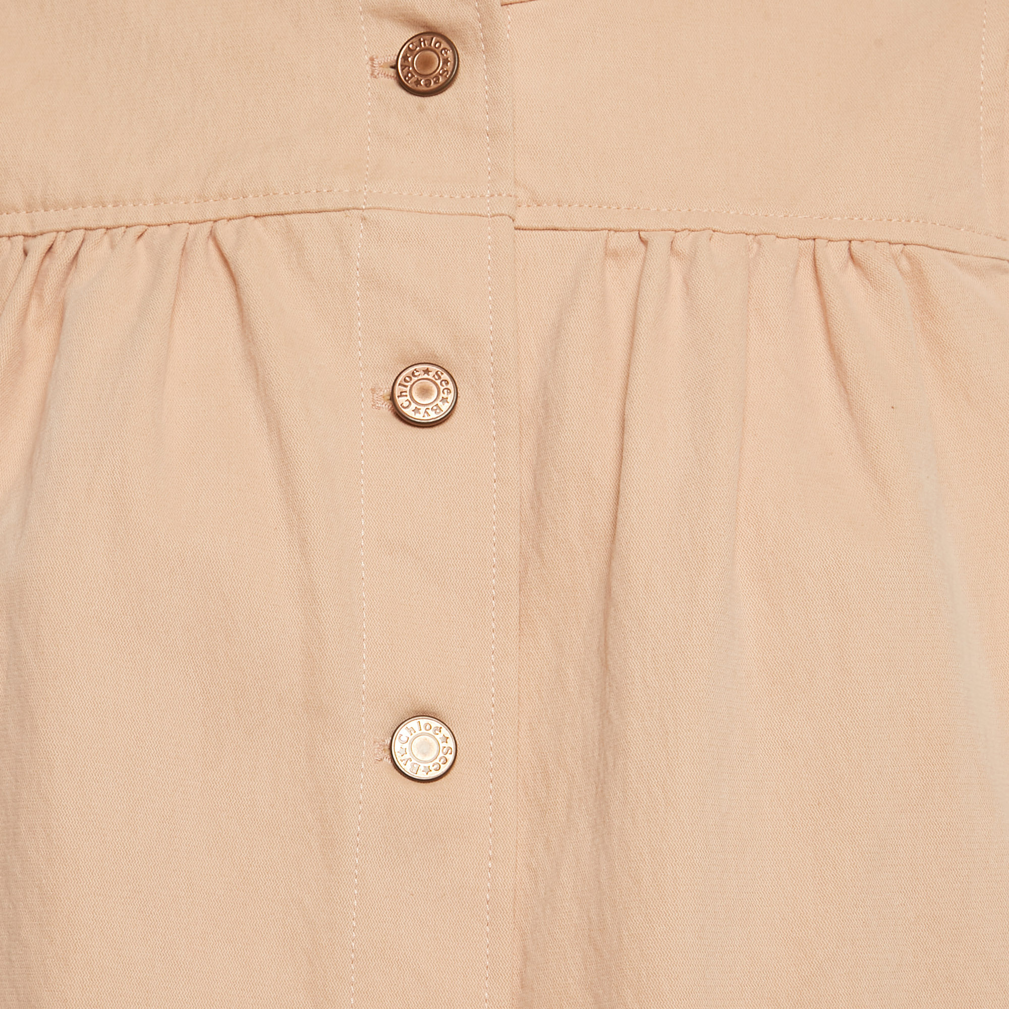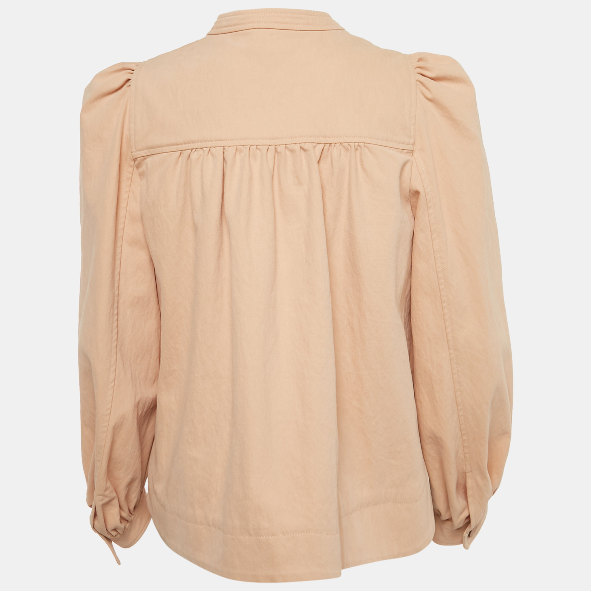 See by Chloé’s beige cotton blend jacket brings a gentle contrast between utility and softness, its puffed sleeves adding volume to a familiar form. The neutral shade pairs easily with denim or light dresses, making it a versatile layer across seasons.
