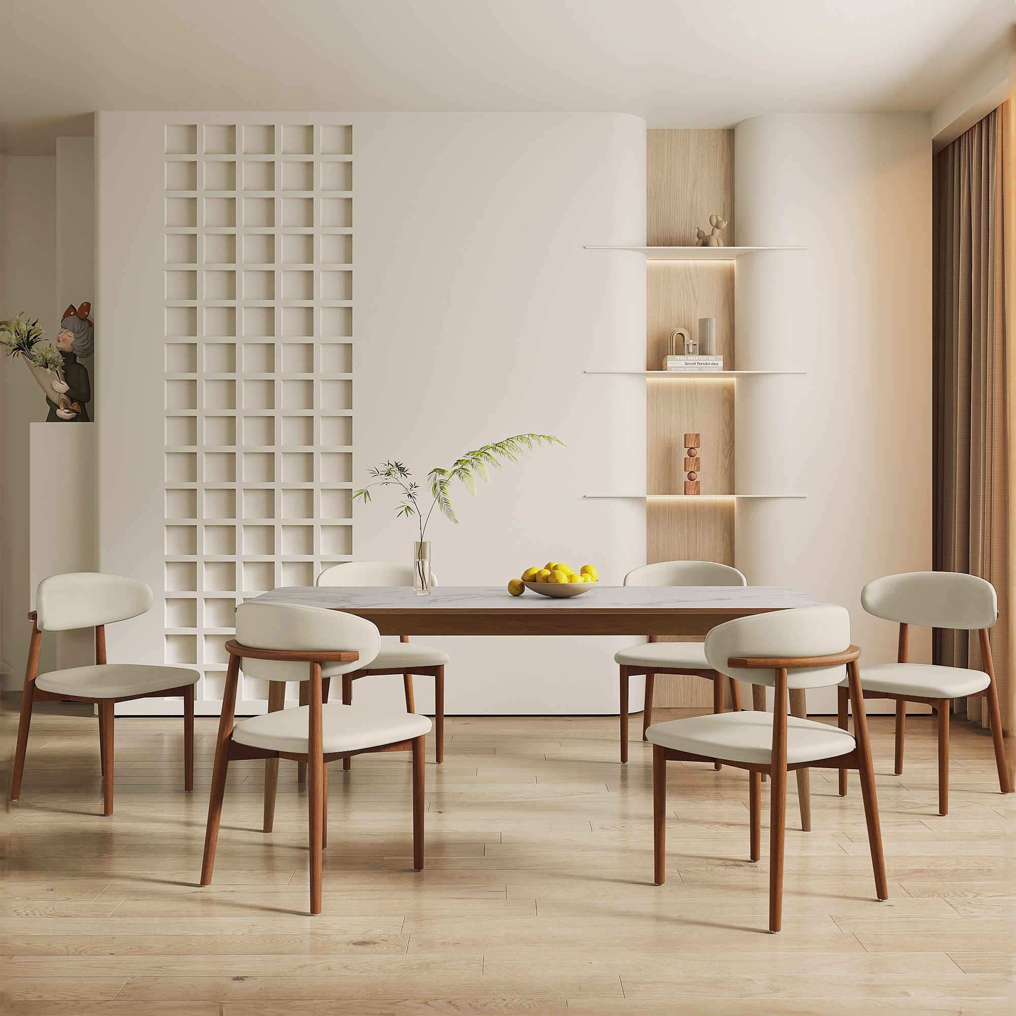 This modern dining chair with a curved back and cast solid wood legs complements the rustic nature of the wood with a modern design. The unique curved backrest design not only brings you comfortable support but also gives the entire space elegance and smoothness.color:Beige, color:Brown, frame material:Rubber Wood, upholstery material:PU Leather, filling:Foam, back design:Upholstered Back, armrest design:Armless, unit count:2 PCS, max bearing weight:330 lbs