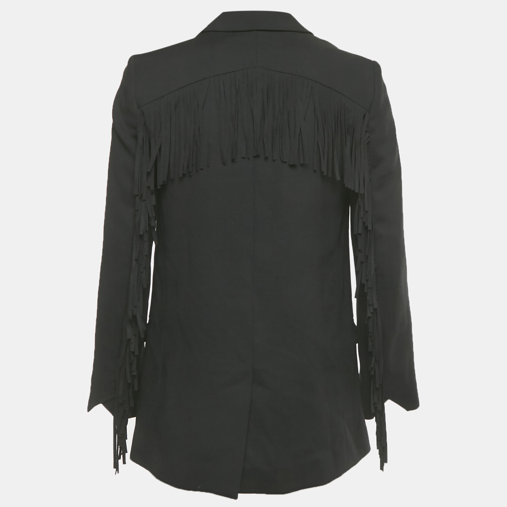 This Zadig and Voltaire Viva Frange blazer takes the sharp lines of classic suiting and softens them with back fringes that sway as you move. In deep black, it feels both rebellious and refined.